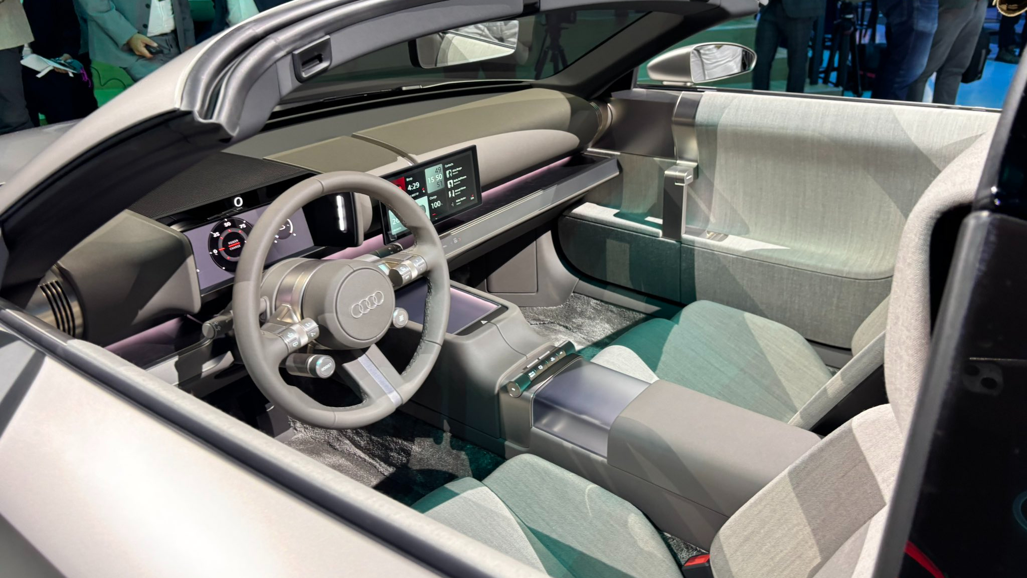 That is the key idea behind what Audi is calling its “shy tech” approach. Rather than plastering the dashboard with glass and calling it sophisticated, the concept shows technology stepping back unless it is needed. The screens that are there are purposeful. The physical controls that remain are made with obvious care and craft. The anodized aluminum alone signals a commitment to material quality that a touchscreen, however large, simply cannot replicate by feel.