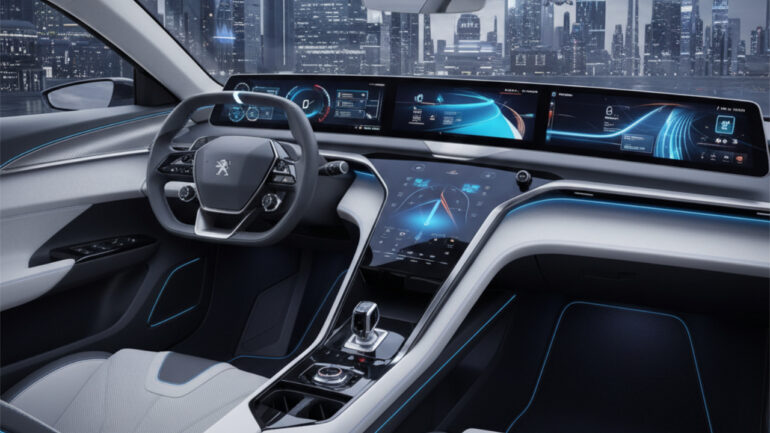 Peugeot’s concept also demonstrates potential integration with semi-autonomous features. The wheel can detect grip, rotation, and hand presence, allowing the system to adjust driver support accordingly. Touch-sensitive controls replace traditional stalks for functions like wipers and lights, centralizing input for a cleaner cockpit layout.